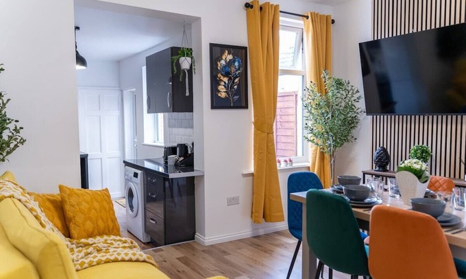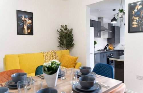 24-hour self check-in, Smart TVs, 900 MB/s Full-fibre broadband. Large house with 3 bedrooms, Free Parking available. Fully equipped kitchen.