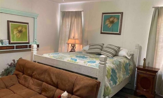 Open and airy guesthouse nestled in a quiet and peaceful travel park (Heart of Texas RV Park) located conveniently in town, but with an out of town feel. 3.5 miles to Brady Lake access and just minutes to Walmart, antiquing, and dining.