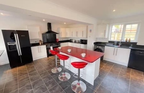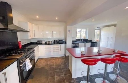short-term rental in Kent Just 5 mins from the beach and vibrant town centre, beach, golf club and several entertainment. A family-friendly home with a big garden featuring a hot tub. Enjoy board games, video games, and a cosy living area, plus a large kitchen for entertainment. Our fifth bedroom doubles as an entertainment room with a sofa bed.
