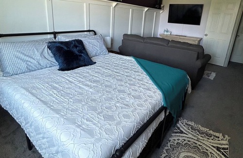 This home includes a 1 king sized bed, a 2 twin memory beds, 1 queen sized memory foam bed, 1 pullout couch and 5 bedrooms with 2 bathrooms. 1 out of the 5 bedrooms have their own private bathroom!