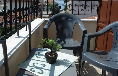 Our apartment is on the first floor of a traditional Pelion-style building in the village of Kala Nera. In 85 sqm there are two bedrooms, a bathroom, a living room, a fully equipped kitchen with a dining table and two balconies. One with a view of the sea and the mountain and the other of our garden. We are only 100m from the promenade and the beach and the car is not really needed in the whole village. Free internet wifi, air conditioning.