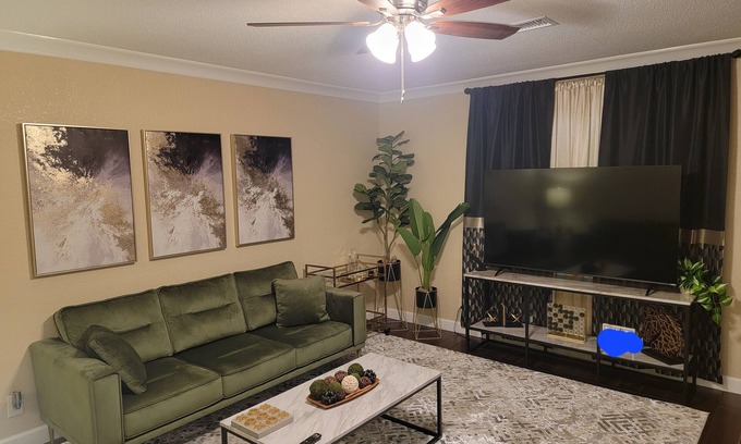 Texas. Experience the comfort and luxury of a fully furnished and nicely decorated garden home. It is our goal to provide a nice, clean, and safe environment for our guests to enjoy. Attention to the details is what sets us apart from the rest. Come and enjoy a good nights sleep on our comfortable bedding. Cook a fantastic meal in our up-to-date kitchen utilizing top of the line appliances. If you're just in need of a little rest and relaxation, come and have a seat on the porch and listen to the birds. Located in the heart of Orange and only minutes away from local stores and restaurants, you'll enjoy the convenience and ease of visiting nearby establishments. Wifi is on the house so if you'd rather stay in, you can stream all of your favorite shows with ease. Each of the three bedrooms are furnished with queen sized beds and televisions. Two twin sized air mattresses are also provided. If you are interested in staying in the area for an extended period of time and need long term accommodations, send us a message to discuss long term pricing. Come and Bee our guest at the Honey Hive. We'll bee glad to have you.