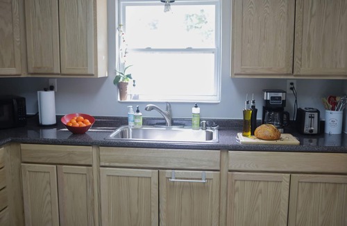 Orange Tree Cottage is a charming getaway, clean and adorable. We love the tree-filled backyard but the interior of the cottage is welcoming. I love the big sofa and chair in the cozy living room. Amenities include great internet, dedicated workspace, king and queen bedrooms, coffee bar, laundry, and much more! Nothing better than reading a good book curled up on the spacious sofa with a cup of coffee to start the day!