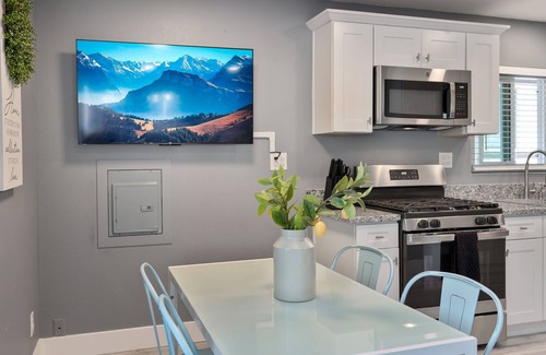 Kick back and relax in this calm, fully renovated space. Two bedrooms with one full bathroom, spacious kitchen with new appliances, oversized family room couch with dining area overlooking big screen smart TV and backyard with BBQ & outdoor dining.