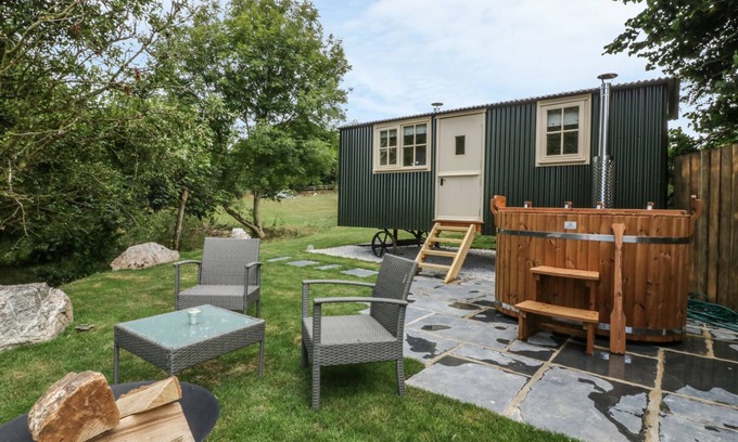 Orchard is a stylish sheperd's hut placed just over a mile from the market town of Wadebridge in Cornwall. It benefits from open-plan studio accommodation with a double bed, there is also a shower room, the property can sleep two people. Its interior also includes a kitchen and a dining area with a woodburning stove. Externally, discover plenty of off-road parking, as well as a lawned garden with furniture and a wood-fired hot tub - fire logs are provided. Orchard is a unique and tasteful retreat for that long-awaited break with your other half. Sorry, no pets and no smoking. No Wifi but excellent 4G mobile phone signal. Shop and pub 1.5 miles.