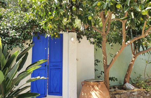 In 1985, the Belgian Christina and her Greek husband bought an old house in the quiet, leafy village of Lagoudi, at the foot of Mount Dikeos on Kos. The breathtaking view was the reason. Here she also opened her gallery in the garden and put her pictures and icons under. The bistro cafe came shortly after and everything was immediately discovered by well-known travel guides, like Dummont and Marco Polo. Tourists came and would like to spend the night, so the apartments were created.