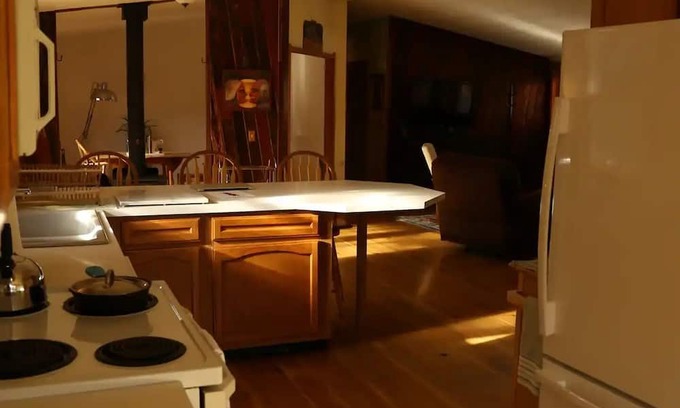 The property is in the country, private and peaceful. It offers big decks, fire pits and a sauna on the outside. Inside is open concept with access to a full kitchen and laundry room. There is a master bed and bath with a queen bed, 2nd bedroom with a queen bed, 3rd bedroom with full size bed and twin trundle along with a second bathroom. If you are feeling outdoorsy, our swinging futon is a full size.