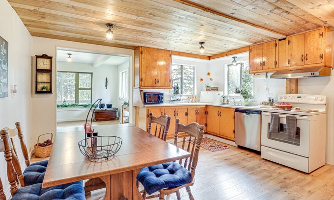 Chase after all your favorite outdoor pursuits at this Gates vacation rental! The 1-bedroom, 1-bath cabin provides the ideal base, with a fire pit outside and a cozy interior boasting a sunroom and a full kitchen. Waterfront explorers will love fishing, kayaking, and rafting along the Santiam River or Detroit Lake State Recreation Area, while travelers who prefer dry land can explore Silver Falls State Park. No matter where you roam, you'll love ending the day back at the cabin.