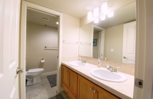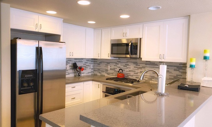 This 2-bedroom/2.5-bath condo is furnished with your comfort in mind. Central A/C and heating. The Tuft & Needle queen mattress in the master bedroom and the Casper queen mattress in the guest room will allow you peaceful slumber. Newly renovated, modern kitchen.