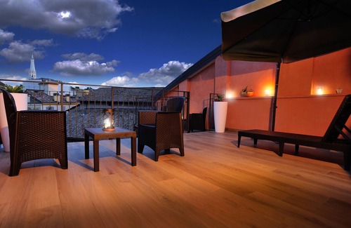 You will also be able to enjoy the large shared terrace on the top floor overlooking the Ghirlandina and the roofs of the historic centre, ideal for your outdoor aperitifs or to enjoy a bit of sun.