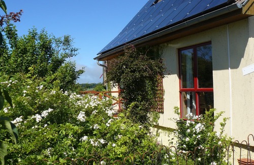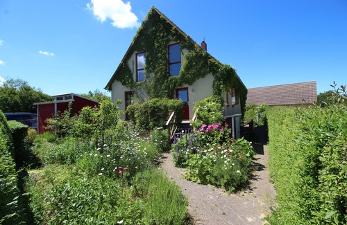 What is special about the house is the absolutely quiet location on the outskirts of the village with a clear view of the coast and fairytale forest, and especially the large natural garden around the house. Some guests described it as 'probably unique' and 'almost enchanted' - thank you! The property is fenced with a natural fence and protected from view except from the neighboring house on the north side (very discreet, nice neighbors). In the back part of the garden and on the large south-facing terrace you are completely undisturbed by the wind that blows almost continuously from the sea (1 km as the crow flies westwards is the coast). The air often smells slightly of salt, mixed with herbal fragrance from the garden. At night you often have an almost perfect starry sky above you, with no disruptive light, except for the flashing lighthouse on Hiddensee at a distance of 5 km and in the other direction from Cape Arkona lighthouse.