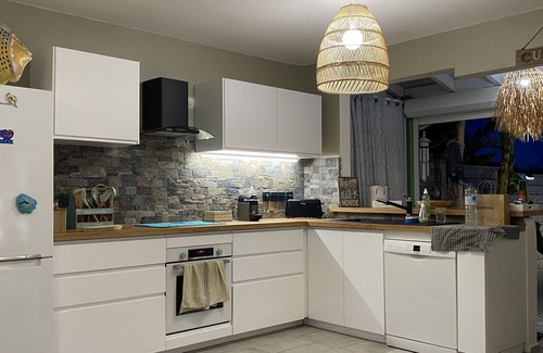 villa beach house creole and contemporary both fully renovated and improved after Irma to offer you even more comfort and benefits. no need for a car all can be done on foot the most beautiful beach of the island orient bay is 3 minutes walk as well as restaurants and shops, benefits and decoration of standing with private pool large deck, BBC gas, 6 sunbeds, bar, lounge, dining room, kitchen dishwasher, washing machine, microwave, coffee toaster, kettle, induction hob, oven, Nespresso machine, 1 air-conditioned suite with bathroom, large closets king bed sixteen with canopies 180X200, 1 air-conditioned double room king-size bed with canopy 180X200,1conditioned twin room 2 beds in 90X200, 1 bathroom with huge walk-in shower, 2 separate toilets, 1 baby bed, high table, baby stroller, crockery , HD130CM TV channel + Dock Bose DVD player, safe.