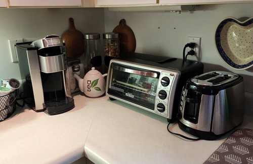Oriental Suite has Queen bed and single daybed sleeper with jacuzzi tub bathroom for single/double occupancy. Has sitting room, wide screen TV, Internet TV, kitchenette, fridge, MW, toaster oven, full kitchen utensils, coffee pot. Overlooks River and woods. A Treehouse Suite. Coffee, tea, juice, oatmeal, fruit, milk included in room rate.