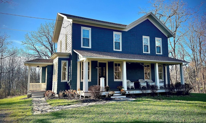 Kick back in this warm, relaxing, stylish, renovated circa 1900 Farmhouse. Keep warm by the camp-style firepit in a peaceful 2 acre setting. Watch the sunset over the lake from the back deck. A short walk to the neighborhood store, ice cream, pizza and Eastside Bar & Grill. A short walk through the backyard with access to beautiful Canandaigua Lake. Close to wine tasting in the Finger Lakes, Naples, Bristol and Hunt Hollow Ski hills, wedding venues, and summer concerts at CMAC.