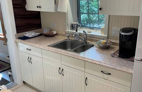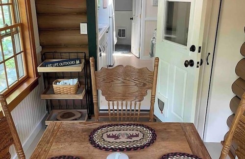Entire place is yours. You will have everything you need for your vacation stay. The main cabin has one bedroom with a Queen size bed and one bathroom. The kitchen is equipped for cooking and dining, including oven, K cup coffeemaker, drip coffeemaker, microwave, waffle maker, blender, various pots, pans, dishes and other amenities. Complimentary basket of k cups, sugar, creamers, bottled water and an assortment of snacks included. Amenities for bathroom include towels, soap, shampoo, conditioner and hair dryer. Relax in natural surroundings by the electric fireplace on cooler evenings or sit on the screen porch enjoying your morning coffee. You may even hear the sound of loons on the lake.