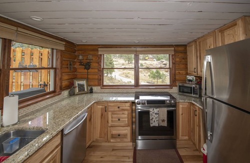 Original Rocky Mountain National Park Cabin W/Modern Updates &360 Mountain Views is located in Estes Park. Original Rocky Mountain National Park Cabin W/Modern Updates &360 Mountain Views provides accommodation, featuring View, Security/Safety, Sports/Activities, among other amenities. This Cabin features View, Security/Safety, Sports/Activities, to make your stay a comfortable one.