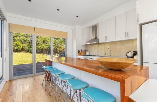 Orion's Lookout is a unique, architecturally designed property suitable for several families or larger groups to come together to enjoy a coastal getaway. Generous common spaces, plenty of natural light and a good sized backyard and deck will mean that everyone feels at home. The property is within walking distance of several beaches, with access points to Orion’s Beach just across the road.