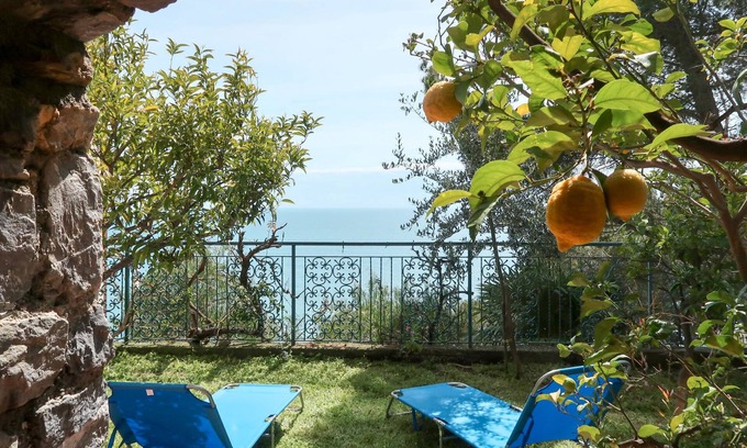 "Orizzonte", 4-room house 150 m2 on 2 levels. Practical furnishings: 1 room with 2 beds (80 cm), open-hearth fireplace (only for decoration). Exit to the terrace. Kitchen (4 hot plates, oven, dishwasher, toaster, microwave, freezer, raclette grill) with dining table. Exit to the terrace. Shower/bidet/WC. Upper floor: living/dining room with dining table, satellite TV and radio. Exit to the balcony. 1 room with 2 beds (80 cm). Exit to the balcony. 1 room with 1 double bed (140 cm). Exit to the balcony. Shower/WC. Electric heating, air-conditioning. Balcony 18 m2, terrace 20 m2 partly roofed, small patio. Terrace furniture, balcony furniture, barbecue, deck chairs (3). Very beautiful view of the sea. Facilities: washing machine, iron, children's high chair, baby cot. Internet (WiFi, free). Please note: non-smokers only. Maximum 1 pet/ dog allowed. IT009006B4UK7LV4DL