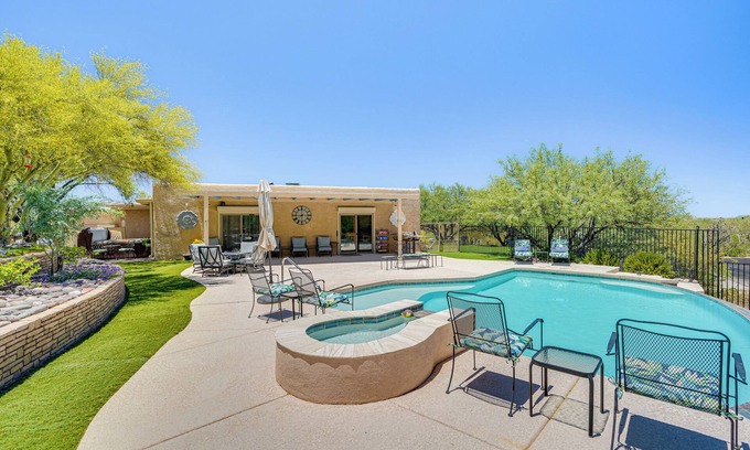 Oro Valley Retreat w/Pool & Breathtaking Views! is located in Oro Valley. Oro Valley Retreat w/Pool & Breathtaking Views! provides accommodation, featuring Pool, Balcony/Terrace, Security/Safety, among other amenities. This House features Pool, Balcony/Terrace, Security/Safety, to make your stay a comfortable one.