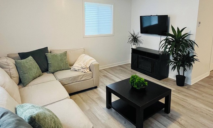 Best-rates for the Orono Townhouse Retreat-Clarington starts from $164 per night with includes Air Conditioner, Parking, Security/Safety, Child Friendly, Kitchen, TV, Bedding/Linens, Fireplace/Heating, Internet, Laundry with all other amenities. Perfect for Weddings is committed to ensuring every guest experiences a comfortable and extraordinary stay, whether planning a romantic getaway, a honeymoon, a pet-friendly stay, or celebrating with the entire wedding party.