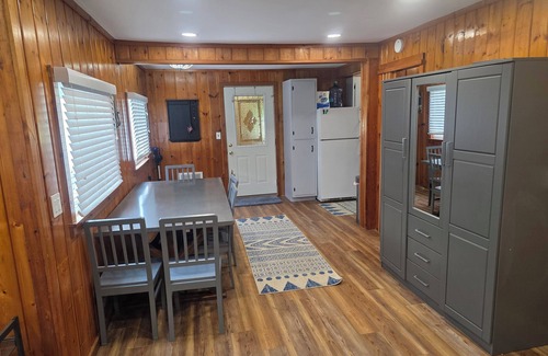 AC, heating, washer/dryer, microwave, blender, pots/pans/dishes for 6, toaster, cake and cookie pans, TV, dining table and 6 chairs, starlink super fast WiFi, hair dryer.