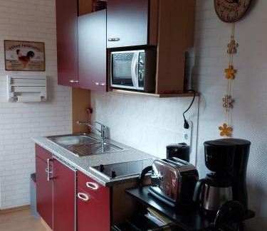 OSTSEEFERIEN IN LICHTENHAGEN-DORF FERIENWOHNUNG offers accommodations in Elmenhorst Anteil, 3.4 miles from Shipbuilding and Maritime Museum and 3.8 miles from Neue Messe Rostock. This property offers access to a terrace and free private parking. Rostock Port is 5.2 miles from the apartment and Warnemuende Sea Boardwalk is 5.6 miles away. With free Wifi, this 1-bedroom apartment provides a flat-screen TV and a kitchenette with a microwave and toaster. Towels and bed linen are provided in the apartment. The property has an outdoor dining area. Guests at the apartment can enjoy hiking nearby, or make the most of the garden. Zoo Rostock is 6.5 miles from OSTSEEFERIEN IN LICHTENHAGEN-DORF FERIENWOHNUNG, while Volkstheater Rostock is 6.8 miles away. Rostock-Laage Airport is 29 miles from the property.