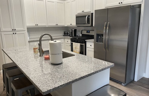 Brand new construction home in late 2022, with high end finishes. 4 bedrooms that comfortably sleeps 8 (1 king, 3 queen beds). Stunning master bedroom bath with additional second full bath. Kitchen is stocked with your cooking needs. Large screen smart tv in living room, w/additional tv in master bedroom. Plenty of parking on driveway and private dead end street. Located close to campus, just east of Perkins. Minutes from everything Stillwater has to offer.