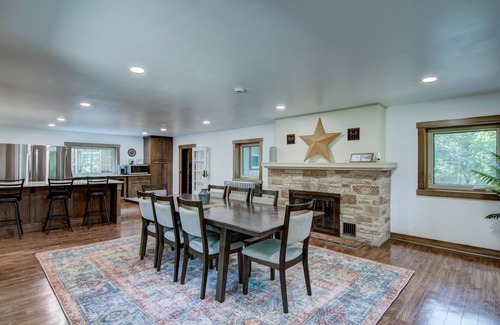 Step inside this charming residence, and you'll be greeted by a harmonious blend of modern sophistication and rustic charm. The spacious living areas provide a welcoming retreat, with large windows that frame the natural beauty surrounding Otter Creek Manor. Cozy up by the fireplace in the dining room or gather in the oversized living room with an 86" television.