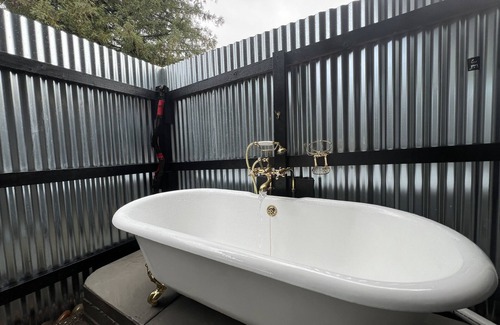 The Star Dome Planet is a 1,000 sqft with an open space interior design that allows for maximum entertaining. Safe and Cozy Sleeping for Four guests (2): Two guests on a comfortable KS bed, and a QS floor mattress for occasional visitors. Both the KS bed and the floor mattress are under one Star Dome roof. The walls are filled with unique art and sculpture by artist JQ, while the furnishings mirror the mid-century aesthetic of the architecture. We have designed a unique environment customized and filled with magic. An outside clawfoot hot tub for soaking under the stars. A full working kitchen, bathroom with shower, office with dedicated computer desk, and private off street parking. Fully equipped Kitchen is supplied with teas and coffee.