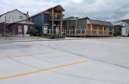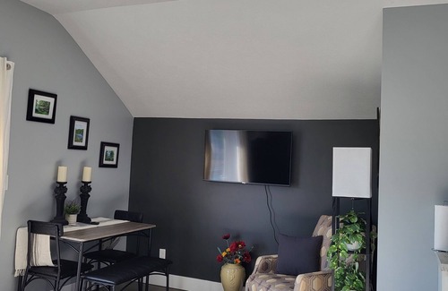 Our 2nd Loft in downtown Hesperia is finally ready! 2 queen beds sleep up to 4 people. It's a little bigger than our 1st, but with all the same great amenities! Private upper balcony overlooking our Northern Downtown with views of the White River and one of our parks. This is an upstairs unit!