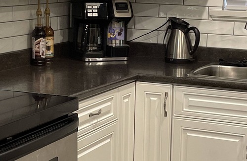 Beautiful newly renovated 2 bedroom basement suite. Basement summer cool with A/C. Added sound protection in ceiling throughout with walk-in closet in master bedroom. 55 inch smart TV, fireplace, alarm, microwave & convection oven and dishwasher with in-suite laundry. K-Cup coffee maker, toaster, iron & ironing board and more. Ready to be your home away!