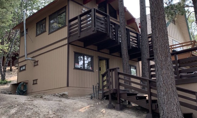 Cozy cabin in the woods. located right between beautiful Lake Arrowhead and Big Bear lake. Two story 2 bedrooms with fireplace, big patio to bar b q with the family. Enjoy beautiful views of the forest