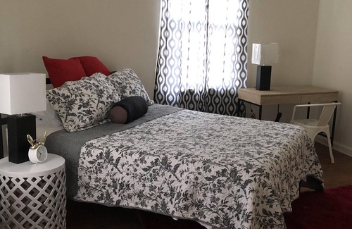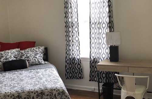 Built in 1900 this home is an original duplex. After purchasing this home many years ago and not having success with long term renters, I have updated and turned it into a short term for those traveling through the area or visiting for awhile. While updating, I still kept some of the old charm and added a touch of class. Bathroom and kitchen are both total updates that are both charming and sensible. Furnishings throughout the home are new and modern. You won’t be disappointed by it at all. Yes the old stairs squeak and the floors crackle at time. The old windows sometimes rattle. They are 120 years old, so they are allowed to do so. You will love the charm of the front porch and yard. The back yard is currently a work in place. Take a walk to the park or a trip to one one our shoppes or restaurants. It will be satisfying for all.