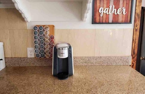 PATCH OF HEAVEN features a king master bedroom with private smart tv, laundry facilities with supplies included, dining area with seating for four, living space with smart TV, full kitchen with new appliances, a second bedroom with two twin beds, and 1.5 bathrooms for your convenience.