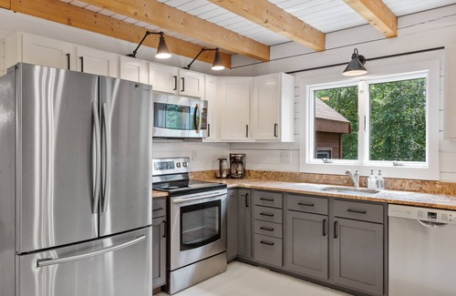 - Lakefront; view of ski mountain, firepit, dock, kayaks, laundry, outdoor shower