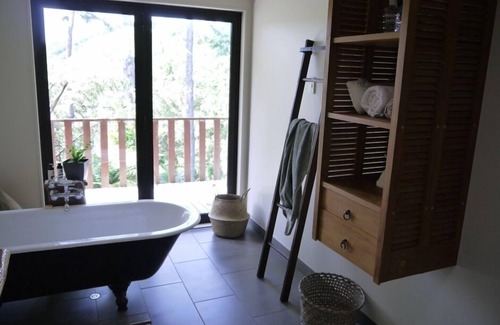 The Tree house boasts modern open plan living with three bedrooms master room is a supper king bed , second room has a queen size bed ,and bedroom 3 has 2 king single beds .Enjoy a close encounter with our native birds