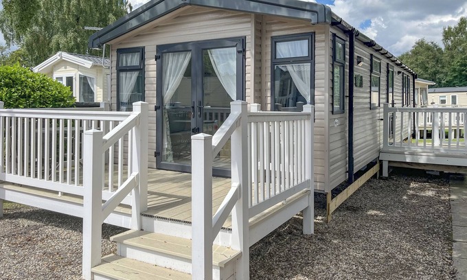 Shower Room: Cubicle Shower, Heated Towel Rail, Toilet. Gas central heating, gas, electricity, bed linen, towels and Wi-Fi included. Back garden with sitting-out area and garden furniture. Private parking for 1 car. No smoking. Please note: There are 3 steps in the garden.. Welcome to your cosy two-bedroom caravan at Beamish Holiday Park where dogs are welcome companions. This home-from-home sleeps six comfortably with a double bedroom featuring a Freeview TV and private access to a separate toilet, alongside a bright twin room and a family bathroom with shower. The open-plan kitchen dining and lounge area invites everyone to gather around the electric fire and TV. A double sofa bed in the lounge provides extra sleeping space. Patio doors open onto a private veranda where you can relax with your four-legged friends by your side. The caravan comes equipped with everything you need including full kitchen utensils, heating, bedding, towels and convenient bathroom facilities.