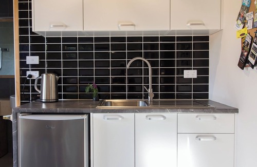 The unit sleeps max 2 guests, 1-2 guests in the main living room (queen). The fully self-contained unit offers cooking facilities including a microwave & cooktop & wine cooler!