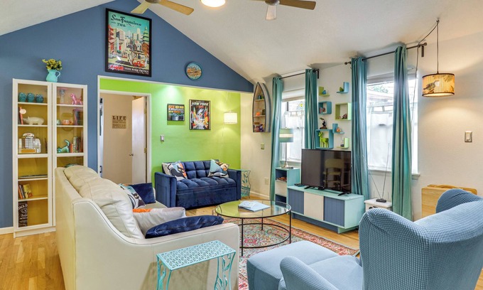 A fun-filled stay begins at this Albuquerque vacation rental! Boasting a colorful interior and beautiful backyard oasis, this 3-bedroom, 2-bath home creates a unique haven for gathering with family or friends. Want to explore? Soar above the city in a hot air balloon, browse local shops in Old Town, or stroll on scenic trails along the Rio Grande. After a day of adventures, retreat to this gem for a refreshing swim and an al fresco dinner!