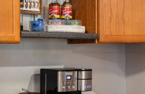 From the moment you arrive, you’ll feel the comfort and care we’ve infused into every detail of your stay. Start your mornings with ease at the fully stocked coffee bar, offering a Keurig, French press, and traditional coffee maker, or shake up a cocktail later using the bartender kit. The cozy sunroom welcomes you to relax, while the spacious dining room invites you to gather around the large farmhouse table for shared meals and laughter.