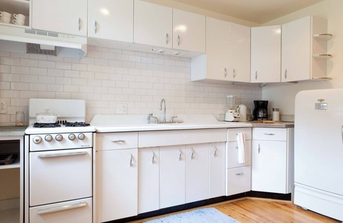 Guest House 2 is the upstairs unit of a two-family home and has 2 bedrooms plus an open sleeping loft, for a total of 3 queen-size beds and 2 full-size beds. It can accommodate up to 10 guests. There is an eat-in kitchen, a living room, and one bathroom. The space has central heat for the winter, window A/C units for the summer, and a smart TV. There is a shared outdoor deck and a communal firpit for both Guest House units, and each unit has a private picnic table and charcoal grill.