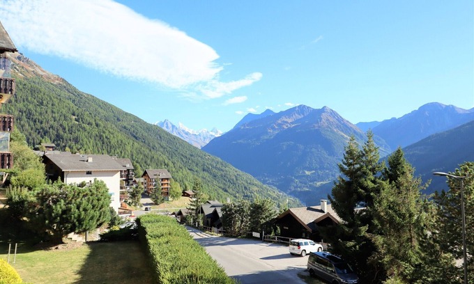 Outside: 2-room flat with south-facing balcony with view of the Matterhorn Foldable terrace furnitu is located in St. Luc. Outside: 2-room flat with south-facing balcony with view of the Matterhorn Foldable terrace furnitu provides accommodation, featuring Parking, Wheelchair Accessible, Wellness Facilities, among other amenities. This Apartment features Parking, Wheelchair Accessible, Wellness Facilities, to make your stay a comfortable one.
