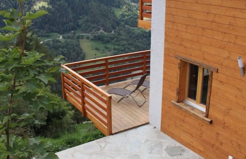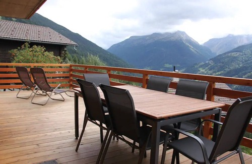 Outside: 4-person chalet with balcony, terrace with garden furniture, breathtaking views of the Val | Ski Chalet in St-Luc