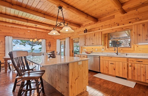 Golden Arrow Lodge is an upscale escape with spectacular long-range mountain views from every room. The expansive main living room is right out of a magazine with soaring ceilings and a beautiful stone fireplace. Sit by the fire in the morning and sip your coffee or sit on the newly expanded deck and watch the sunrise over the mountains while enjoying the warmth from the outdoor stone fireplace. Make meals in the fully equipped kitchen or dine out at one of the many nearby restaurants. After a day of exploring the great outdoors, shopping, or visiting one of the local breweries, return to relaxation at Golden Arrow Lodge with a soak in the hot tub overlooking the mountains. Or, for some friendly competition, head down to the lower-level game room where you can play a game of pool, poker, or an arcade game while watching your favorite team on the 75" TV. The cabin has satellite, and you can also use the WIFI for your streaming apps.