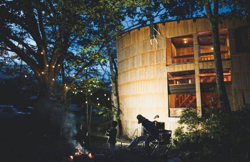 Free sauna a lodge with a spectacular view of Hakuba and relaxing by the bonfire / Located in the center of Hakuba the lodge has easy access to the slopes supermarkets hot springs and restaurants yet is in a very quiet environment with a great view The ovalshaped lodge surrounded by trees is like a treehouse Equipped with swings hammock chairs and a BBQ set free of charge You can also use the very popular tent sauna for free You can enjoy a private space while looking out at the majestic Northern Alps