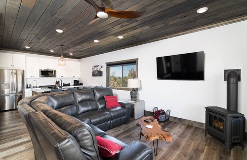 Enjoy Orderville's small-town feel while exploring Southern Utah and all it has to offer. This newly built Carriage House with unparalleled views is centrally located to many of the most visited places in Utah including Bryce Canyon, Lake Powell, Grand Canyon, and Zion National Park. Luxury amenities such as a new Hot Tub, Fireplace, and Fire Pit make this home the perfect place for a romantic getaway or a small family's magical vacation.