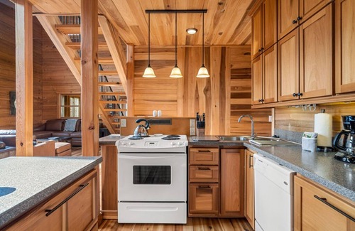 Welcome to Overlook Mountain Retreat, where breathtaking vistas and exceptional craftsmanship come together to create an idyllic wedding accommodation. Nestled within a serene mountain setting, this stunning log home offers the perfect backdrop for your special day. With ample space for guests and unforgettable scenery, you can celebrate love while surrounded by nature's beauty, making it a memorable experience for you and your loved ones.