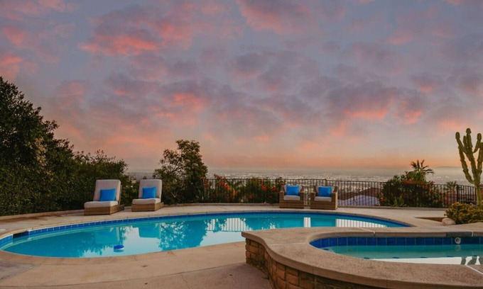 Whittier’s crown jewel. Located elegantly above downtown Whittier, a breathtaking 180° panorama of the city awaits. Nestled within its mid-century modern glass façade, an opulence resort pool and spa that echoes the grandeur of the world's most exclusive retreats. Relish in the famed Southern Californian sun, while an intimate game alcove in the living room beckons for evenings of merriment. Welcome to an unparalleled experience in the heart of SoCal elegance & 20mins to Disneyland.