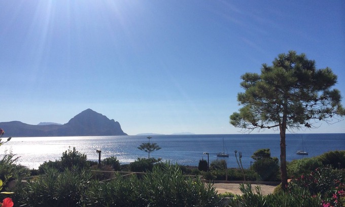 The property overlooks the rocky bay of Makari, in a gulf between Cala Mancina and mount Cofano where the sun sets. The house is arranged on two floors. On the ground floor: a double bedroom , a large living room with a sofa, a kitchen with fridge/freezer and oven, a bathroom with shower and washing machine. On the first floor: a double bedroom ,a single bed and a bathroom. This room opens onto a terrace overlooking the sea. Outside there is also a barbecue grill and a shower. There are panoramic terraces with seaside view on both ground and first floor. There is a third terrace on the hillside with a barbecue grill. The house was renovated this winter.The town of San Vito and the sandy beaches are 3.5 km (about 2 miles) away but there are near the house the beaches of Baia Margherita in the gulf of Macari. A restaurant overlooking the sea, “il Pocho”, perched on the hill is also at walking distance.