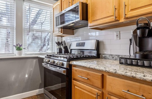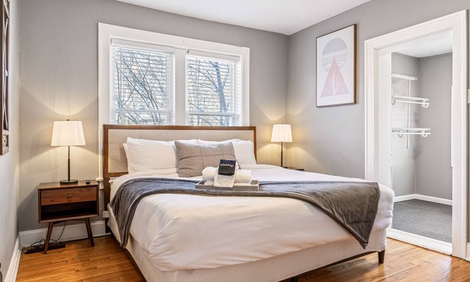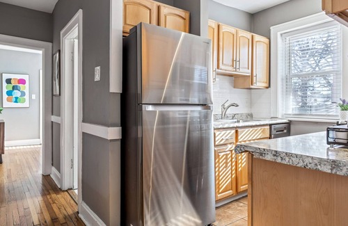 Spacious 2-bedroom, 1-bathroom apartment in a charming 4-unit building, accommodating up to 9 guests by StayLage! Features 2 king beds, a twin sleeper bed, and 2 sleeper sofas. Enjoy stylish design, a central location, and free laundry in the basement. **Dog-friendly only** with a $100 pet fee charged after booking if your furry friend joins you. Perfect for groups seeking comfort and convenience!
